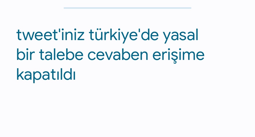 Twitter sansürün sebebini “Tweet’iniz Türkiye’de yasal bir talebe cevaben erişime kapatıldı” şeklinde açıkladı.
